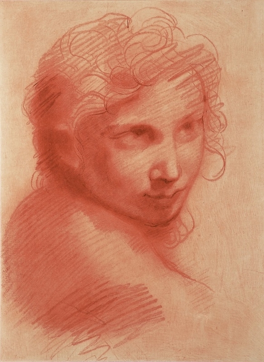 This engraving printed in blood ink is a young man's face sketch probably belonging to a religious composition of the artist. The engraver has perfectly succeeded in restoring the finesse, the "sfumato" and the youthfulness of this face.