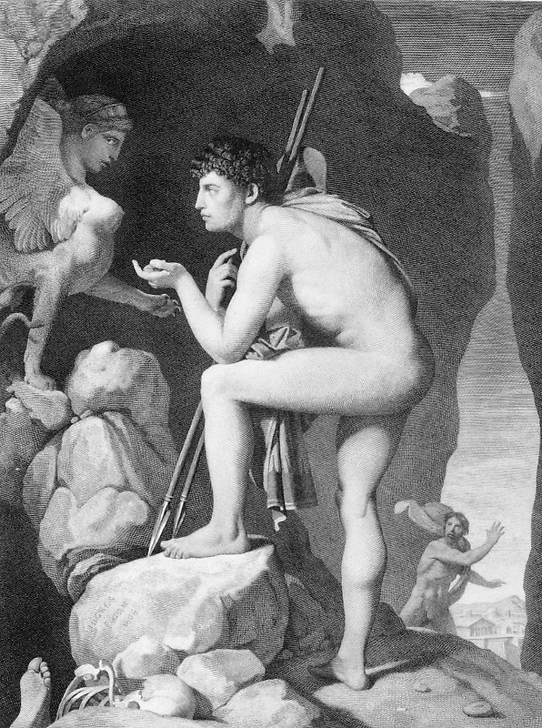 Engraving Oedipus explains the enigma of the sphinx - Ingres