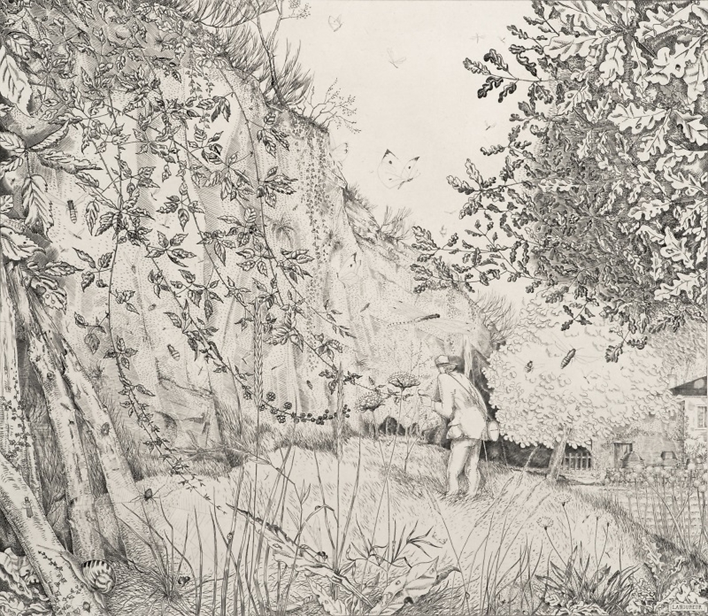 Engraving The entomologist - Jean-Emile Laboureur