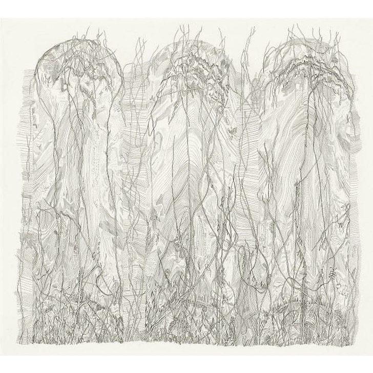Eva Jospin's work combines scenography and trompe l'oeil with sculpture. Her monumental works constantly revisit the forest, the grotto and the garden as spaces for strolling and classical reverie. Myths and fairy tales are conspicuous by their absence: the artist creates the backdrop for a characterless story, where visitors project their imagination. The cutter is her pencil, cardboard her material of choice: they allow her to multiply details, building poetic places stratum by stratum. Grotto is his first print. The accumulation of material is replaced by acid digging. Yet the similarity is clear: the same profusion of detail, the same finesse, create an organic, dreamlike world. The grotto motif appeared in his work during his stay at the Villa Medici, and gave rise to an installation in the courtyard of the Louvre in 2017.