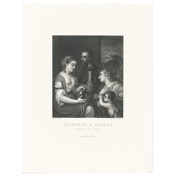 Engraving Allegory in honour of Alphonse d'Avalos, Marquis de Guast - Titien