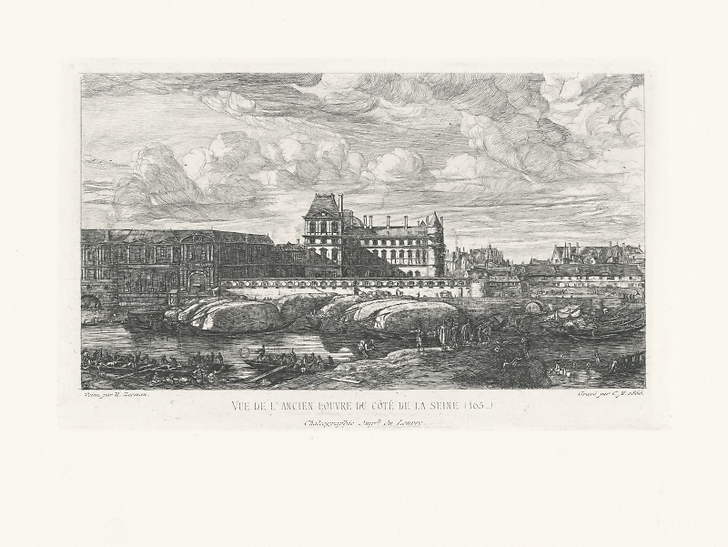 Engraving View of the old Louvre, on the Seine side - Zeeman