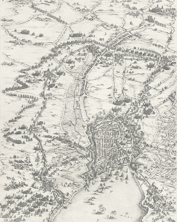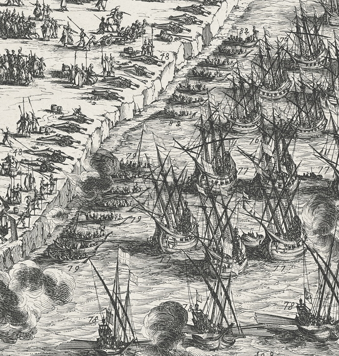 Engraving The siege of La Rochelle, in 1627-1628 - Jacques Callot