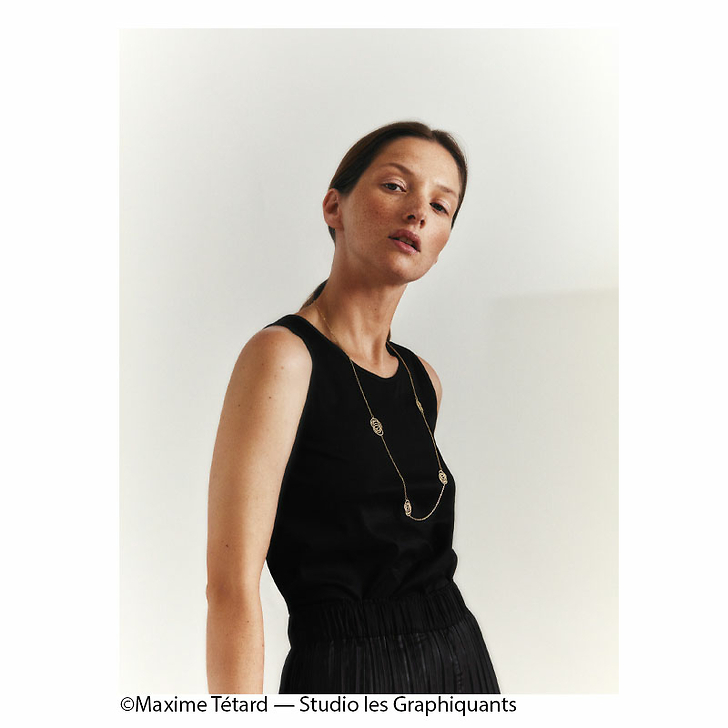 La Rose d'Othoniel" long necklace in brass gilded with fine gold.