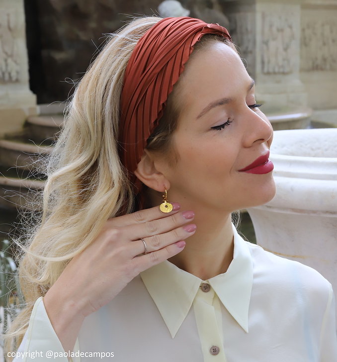 This gold-plated jewel, made in France, is inspired by a circular pendant (Sardis (Turkey), Lydian Kingdom (800-500 BC); Gold) kept in the Louvre Museum.