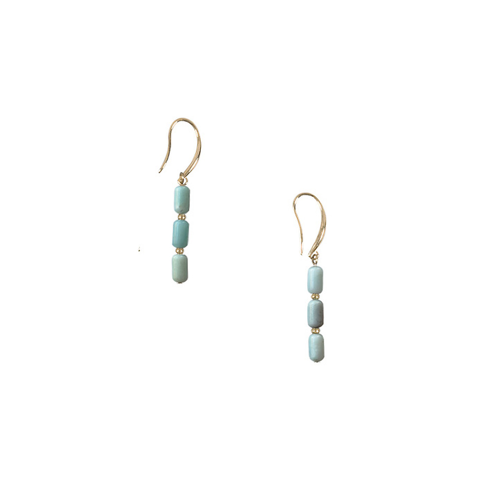The earrings are adorned with natural stones, each of which has slight variations in color, reflecting their unique character.