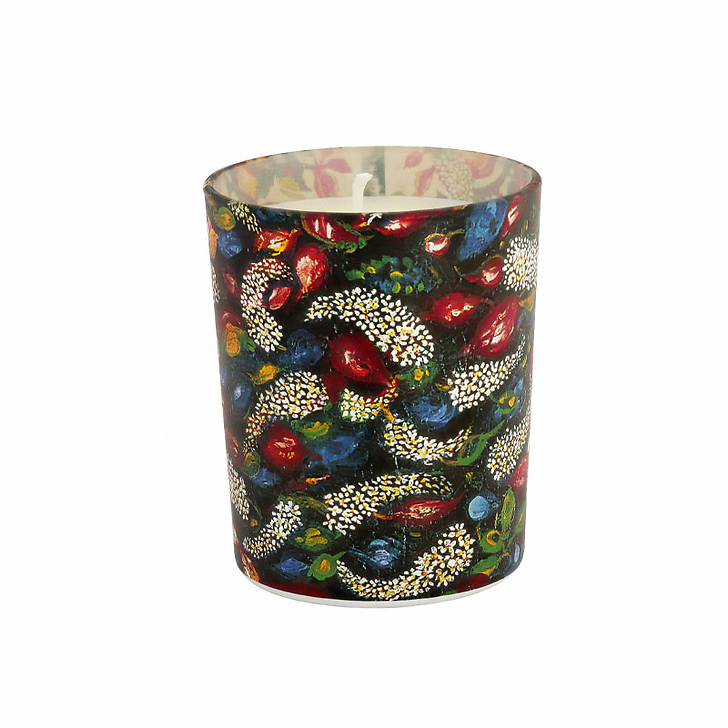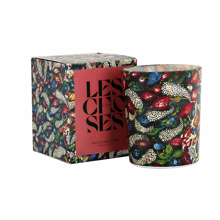 Glass scented candle 185g - Séraphine de Senlis - Flowers or Large bouquet with black vase and blue background