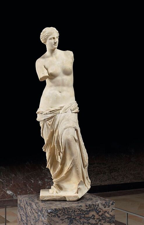 Original work by: Anonyme Original height: 202.00 cm Original width: 64.00 cm Period: période hellénistique (323-31 av J.-C.) (Grèce) Technic: sculpture (technique), marbre Anonyme - Aphrodite dite Vénus de Milo - sculpture (technique), marbre © RMN-Grand Palais (musée du Louvre)