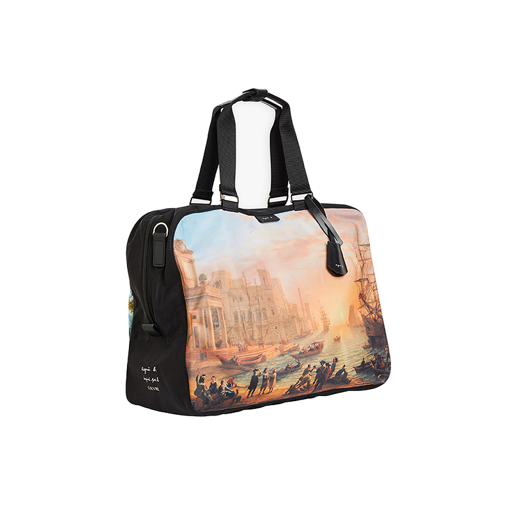 Boston bag in polyester, digital print with "Port de mer au soleil couchant" on one side and "Paysage avec un berger" on...