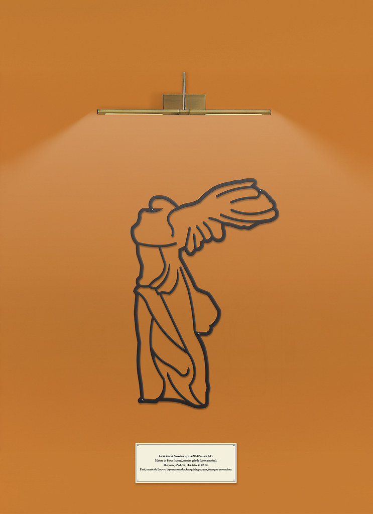 The Line has partnered with the Louvre to create an exclusive collection of wall decorations that reinterpret the contours of the Winged Victory of Samothrace. This unique collaboration combines The Line's minimalist design with the cultural richness of the Louvre, retracing the powerful lines of this masterpiece of ancient Greek sculpture.