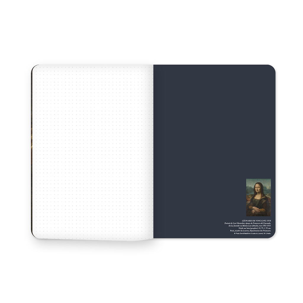 This notebook is illustrated with the iconic work of Leonardo da Vinci (1452-1519), Portrait of Lisa Gherardini, known as Mona Lisa, circa 1503-1519.Portrait of Lisa Gherardini, known as Mona Lisa, ca.1503-1519Oil on wood / H. 77 ; W. 53 cmParis, musée du Louvre, département des peintures© Photo GrandPalaisRmn...