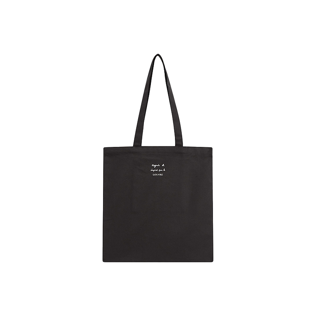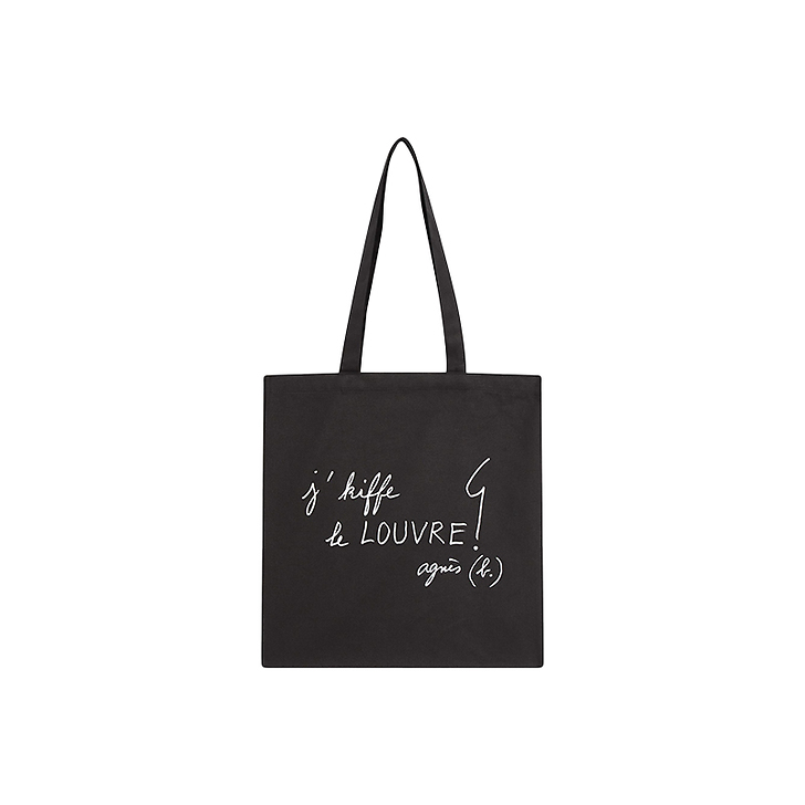Cotton tote bag with "j'kiffe le Louvre" screen print agnès b. inspired by the Louvre - Black