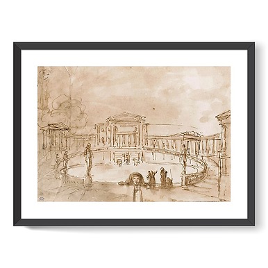 Large central pool surrounded by a balustrade, in the centre of a square (framed art prints)