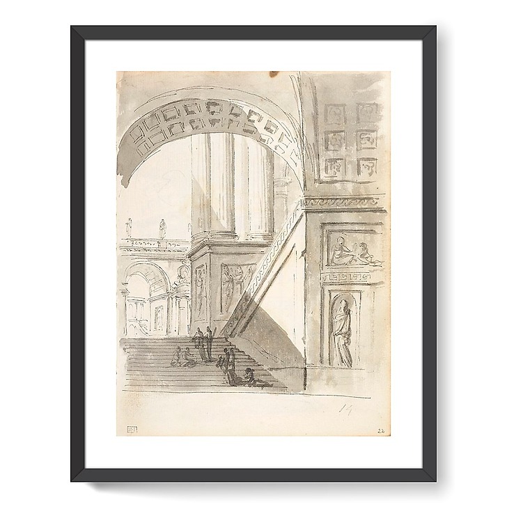 Terrace garden, animated with figures with a round temple (framed art prints)