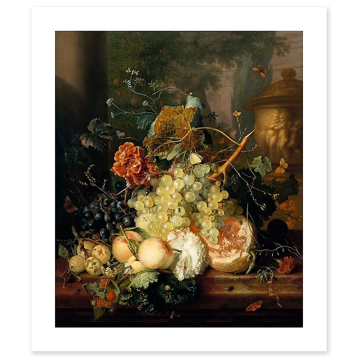 Vase of Flowers, Grapes and Peaches (canvas without frame)