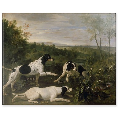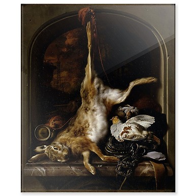 Game and hunting utensils arranged on a window sill (acrylic panels)