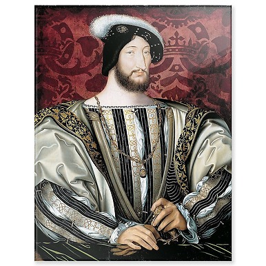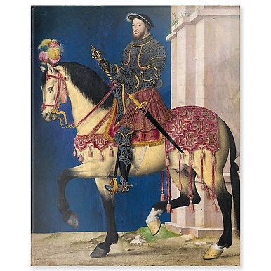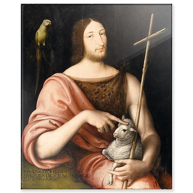Saint Jean Baptiste sous les traits de François Ier. Inscription apocryphe en majuscules et reprise en bas à gauche : FRANÇOYS R* DE *FRANCE* PREMIER DE CE NOM AGE DE XXIIII ANS (acrylic panels)