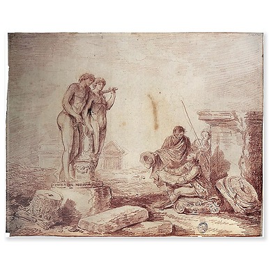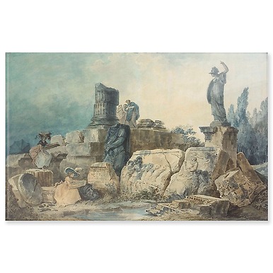 Two young women drawing in an ancient ruin site (acrylic panels)