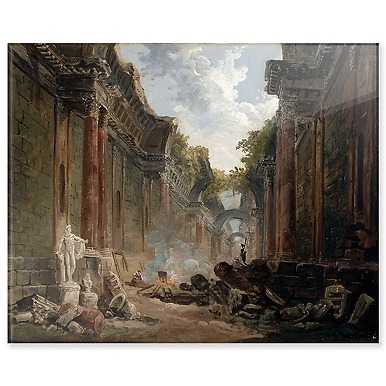 Imaginary view of the Great Gallery of the Louvre in ruins (acrylic panels)