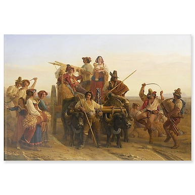 L'Arrivée des Moissonneurs dans les marais Pontins (acrylic panels)