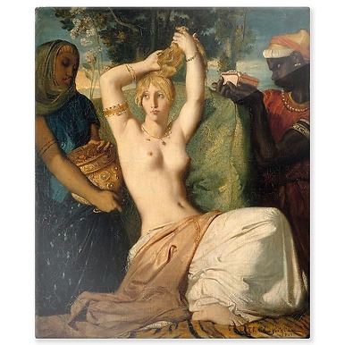 Esther adorning herself to be presented to King Ahasuerus called Esther's Toilet (aluminium panels)