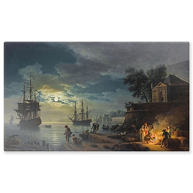 La nuit ; un port de mer au clair de lune (aluminium panels)