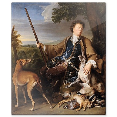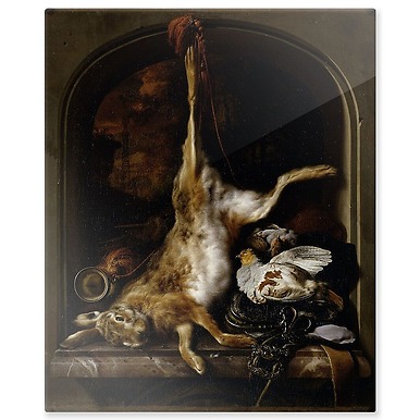 Game and hunting utensils arranged on a window sill (aluminium panels)