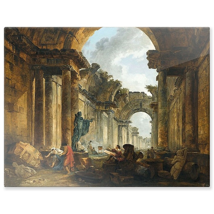 Imaginary view of the great gallery of the Louvre in ruins (aluminium panels)