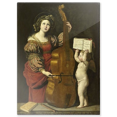 Sainte Cécile with an angel holding a musical score (aluminium panels)