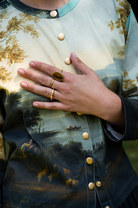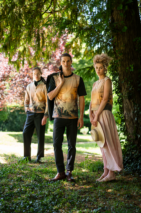 For this new collection Agnès b. chose two works by the French classicist painter Claude Lorrain, famous for his imaginary landscapes inspired by the Roman countryside and classical mythology. She also pays tribute to the work of an artist who made light a central theme oh his studies and influenced some of the greatest names in art history, from Turner to the Impressionists.