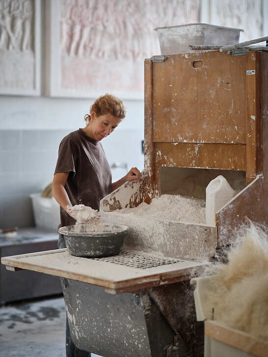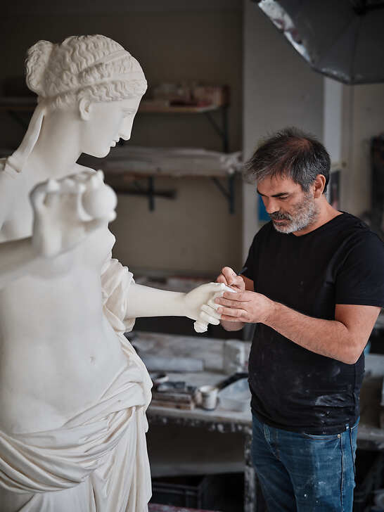 Dépositaires d'un savoir-faire séculaire, les mouleurs-statuaires des ateliers d'art du GrandPalaisRmn rivalisent d'habileté lorsqu'il s'agit de reproduire, pour le Louvre, certaines des plus belles statues et sculptures de l'histoire de l'art. Tout autant artisans d'art que gardiens d'une collection riche de 6 000 moules, mouleurs-statuaires et patineurs veillent également à transmettre les gestes de leur métier à une nouvelle génération d'artisans.