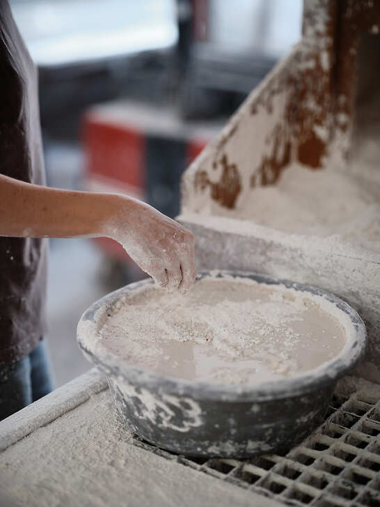 Ce n'est qu'une fois que le plâtre est pris, et donc solide, que le tirage est dégagé du moule. Avant d'être scrupuleusement retravaillé (les « coutures », qui indiquent l'endroit où les différentes parties du moule se rejoignent, sont par exemple ébarbées) afin que chaque trace du processus de fabrication soit invisible à l'œil nu.