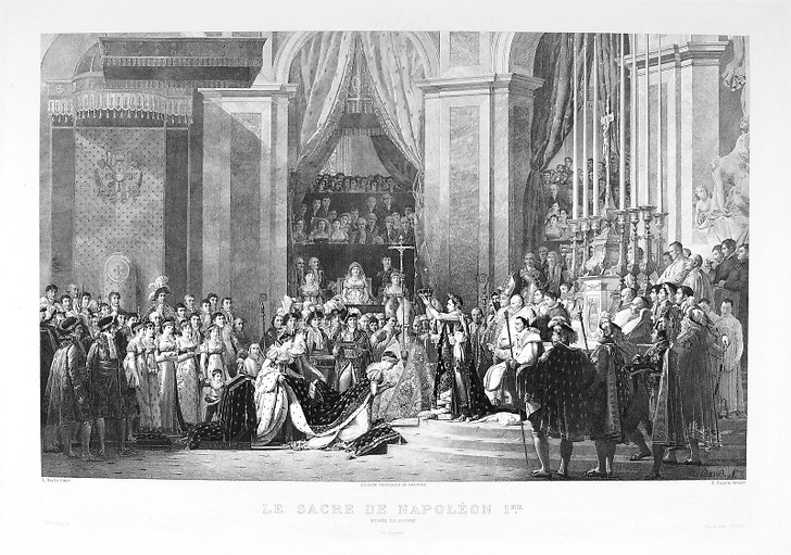 Estampe Sacre de l'empereur Napoléon Ier et couronnement de l'Impératrice Joséphine dans la cathédrale Notre-Dame de Paris - Jacques-Louis David