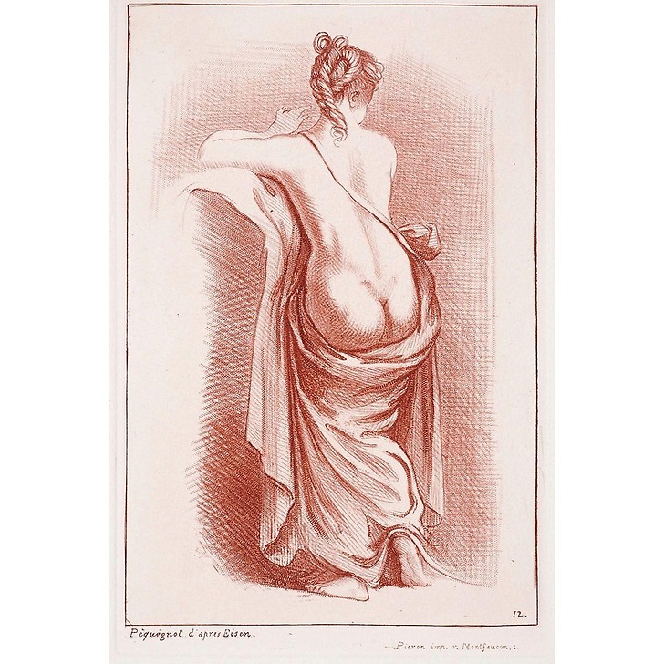Estampe Femme à demi nue de dos - Auguste Péquégnot