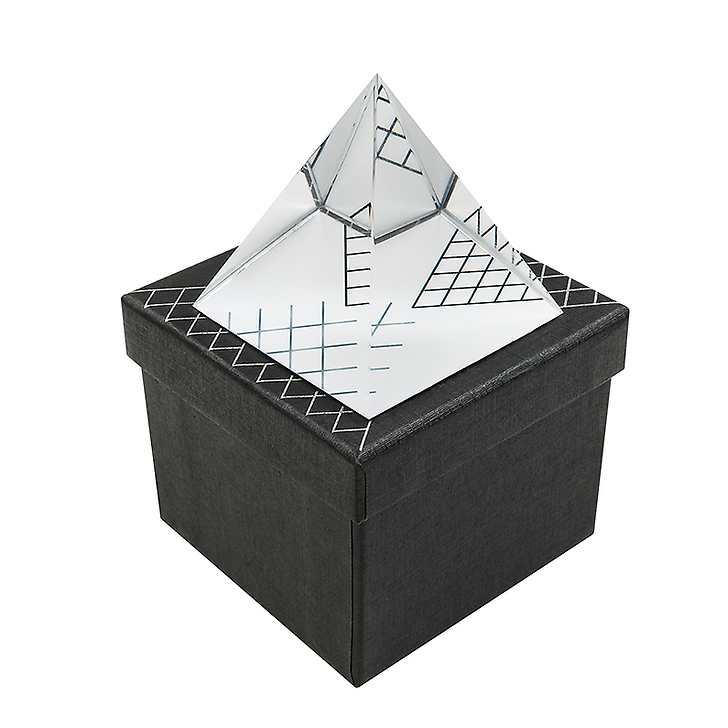 Le designer français Sam Baron a choisi de rendre hommage à l'architecte sino-américain I. M. Pei qui, dans les années 80, dessina la pyramide de verre pour contraster avec l'esthétique de la cour Napoléon du Palais du Louvre. Celle-ci se reflète inversée à l'intérieur du musée créant un dessin géométrique unique qui, transformé en motif graphique, s'adapte aux différents objets qui composent cette collection.