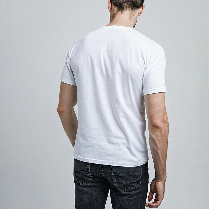 Le mannequin homme mesure 1m87 et porte une taille L.