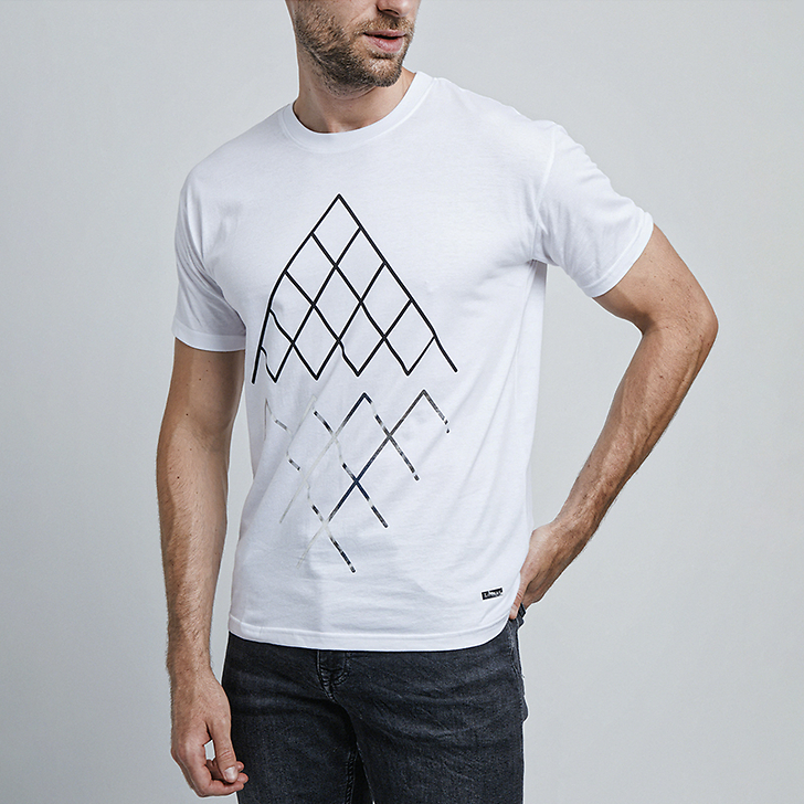Le designer français Sam Baron a choisi de rendre hommage à l'architecte sino-américain I. M. Pei qui, dans les années 80, dessina la pyramide de verre pour contraster avec l'esthétique de la cour Napoléon du Palais du Louvre. Celle-ci se reflète inversée à l'intérieur du musée créant un dessin géométrique unique qui, transformé en motif graphique, s'adapte aux différents objets qui composent cette collection.