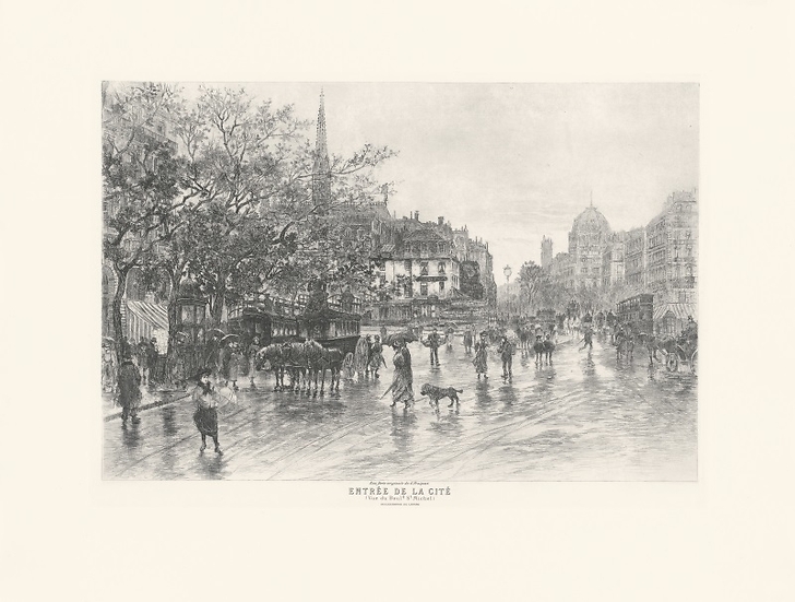 Estampe Entrée de la Cité, vue du pont Saint-Michel
