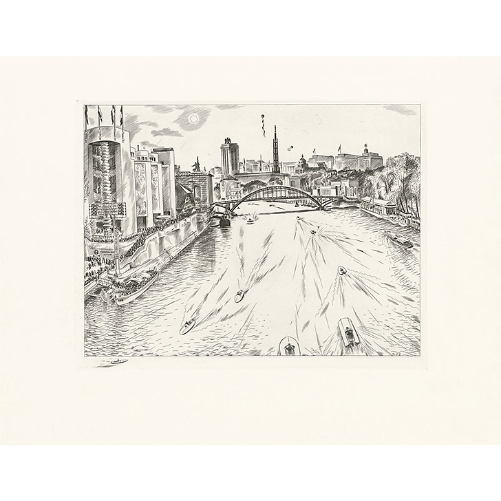 Estampe La Seine (Exposition 1937) - Louis-Joseph Soulas