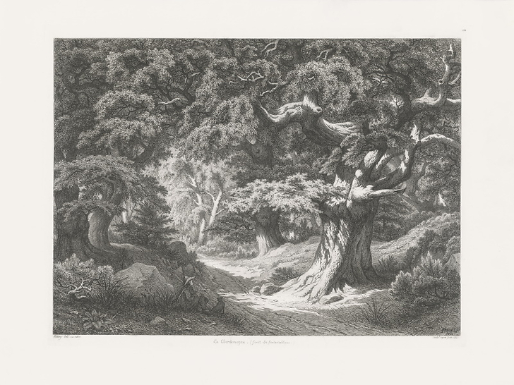 Estampe Forêt de Fontainebleau : le Charlemagne et le Roland - Eugène Bléry