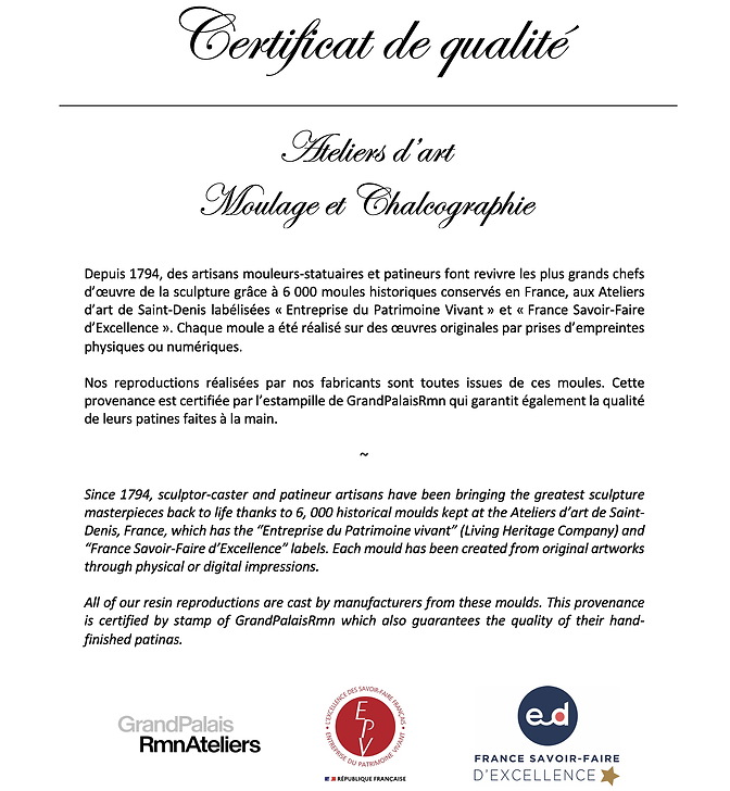Commande expédiée directement par Ateliers d'Art dans un délai de 3 semaines