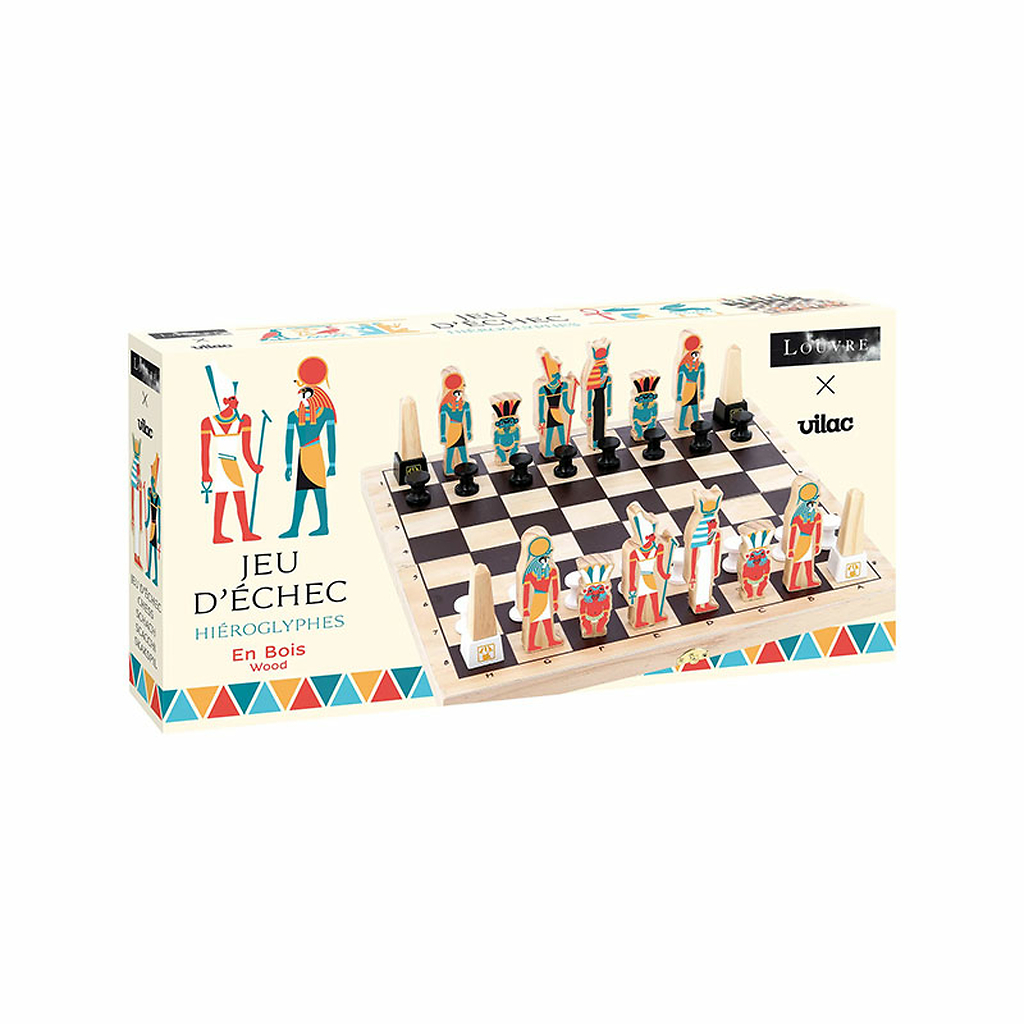 Ce jeu d'échecs créé par Vilac est inspiré par les collections du département des Antiquités égyptiennes du musée du Louvre. Présentant la civilisation qui a évolué sur les bords du Nil, depuis la fin de la Préhistoire (vers 4 000 avant notre ère) jusqu'à l'époque chrétienne (à partir du 4e siècle apr. J.-C.), le département fondé par Champollion en 1826, est aujourd'hui riche de plus de cinquante milles œuvres. Il propose au visiteur un circuit à la fois chronologique et thématique pour raconter plus de quatre mille ans de civilisations !