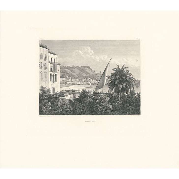 Estampe Le port de Mergellina, Naples, côté du Pausylippe