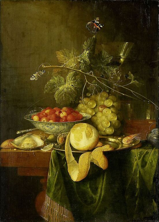Œuvre de : Heem Jan Davidz de Hauteur de l'original : 59,00 cm Largeur de l'original : 43,00 cm Période : 17e siècle, Europe (période) - période moderne Technique : huile sur toile Heem Jan Davidz de - Nature morte au citron pelé - huile sur toile Photo © RMN-Grand Palais (musée du Louvre)