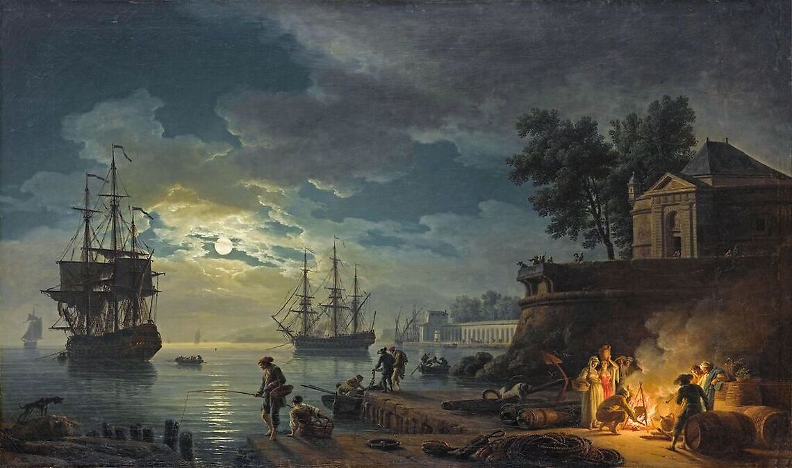 La nuit ; un port de mer au clair de lune (affiches d'art)