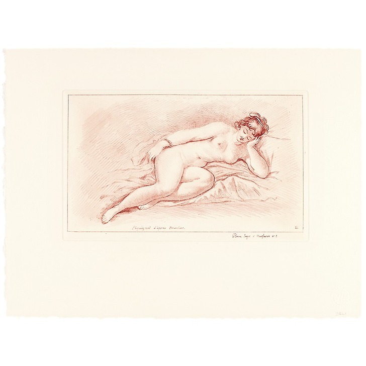 Il grava cette suite de Figures de Femmes d'après les Maîtres, et les rassembla dans un recueil de seize estampes introduit par un frontispice de son imagination. Il fit le choix de s'inspirer des œuvres de François Boucher essentiellement.