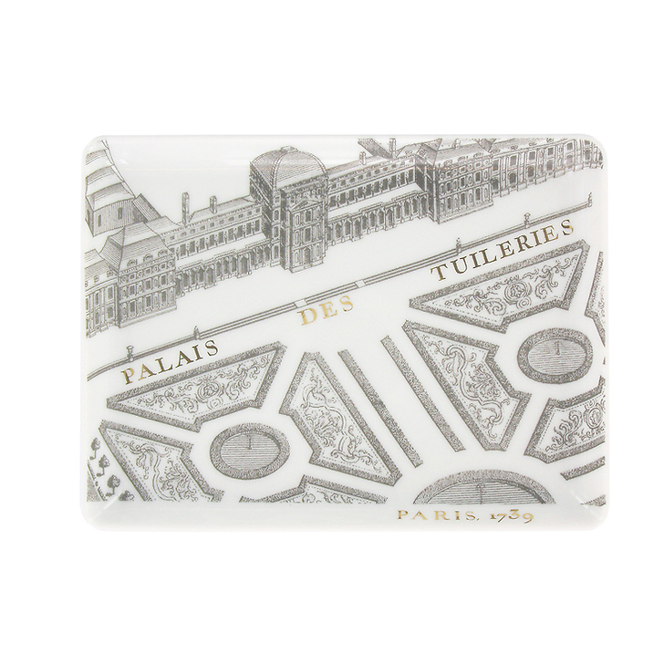 Assiette rectangulaire "Plan de Turgot" - Or, Porcelaine