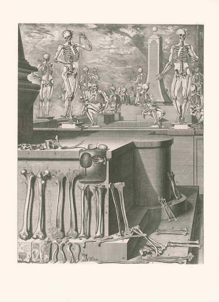 Estampe Proportions et diverses attitudes du corps humain représentées par autant de squelettes