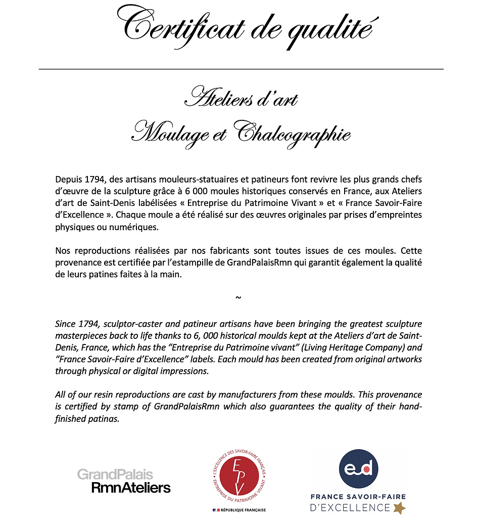- Commande expédiée directement depuis les Ateliers d'Art sous 3 semaines