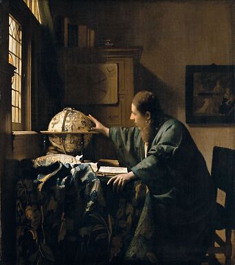Johannes Vermeer est né à Delft et y a vécu toute sa vie. Vendeur d'art, il se considère davantage comme un peintre, travaillant uniquement à la commande et ne produisant pas plus de deux ou trois tableaux par an. Ce qui lui permet tout juste de subvenir aux besoins de sa famille, sa femme et leur onze enfants. Considéré comme le « maître de la lumière hollandaise », Vermeer travaillait les bleus et les jaunes comme nul autre peintre. Son œuvre la plus connue, La Jeune Fille à la perle (1665) est parfois qualifiée de « Joconde du Nord ». Johannes Vermeer ne peignit que 45 tableaux au cours de son existence, dont 35 ont perduré à ce jour. Le peintre figure, avec Rembrandt et Frans Hals, au rang des maîtres du Siècle d'or néerlandais.